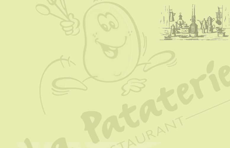 Utilisation des données : Conformément à loi Informatique et Libertés du 6 janvier 1978 modifiée par la loi du 06 août 2004, nous vous informons que les donnés vous concernant pourront être utilisées par d'autres sociétés ou par les franchisés du réseau LA PATATERIE |